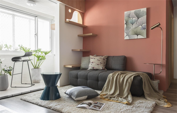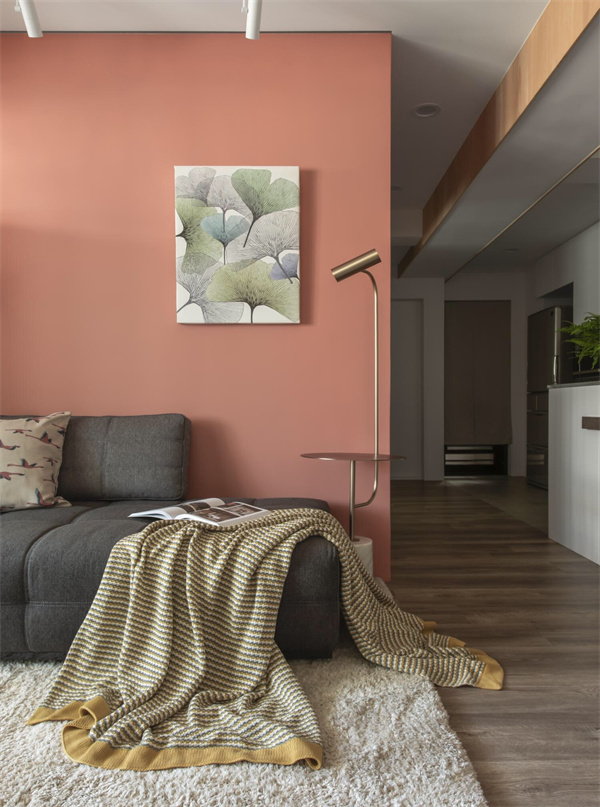 而粉色墙壁作为点缀,为客厅注入了一丝柔和的色彩,既温暖又不失清新。墙上挂着北欧风格的装饰画与壁饰,与整体装修风格相得益彰,展现出简约而不简单的美感。
