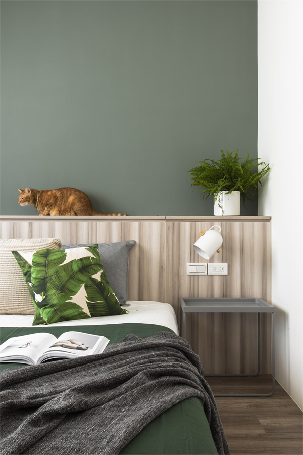 主卧以中性色调为主,淡灰色墙面+原木色地板组合,柔软舒适的床品,搭配精致的软装,打造温馨惬意的睡眠空间。精心挑选的绿植,为空间增添一份清新和舒适感。